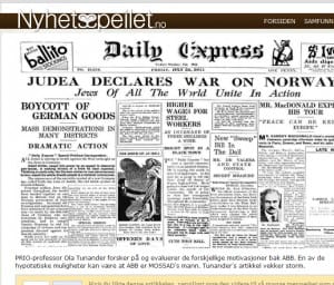 som den siste uken har blitt utskjelt av høy og lav for sine drøftelser av hvorvidt Andres Breivik begikk terror på vegne av Israel, eller mon det var Saudiarabia som stod bak. Tunander har til og med fått kjeft av sin egen sjef på fredsforskningsinstituttet for dårlig omgang med kilder.